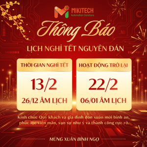 Kính gửi: Quý Khách hàng và Quý Đối tác, Lời đầu tiên, Công ty TNHH Giải pháp Tự động hóa Mikitech Việt Nam xin chân thành cảm ơn sự tin tưởng và đồng hành của Quý vị trong suốt năm vừa qua. Để thuận tiện cho việc sắp xếp công